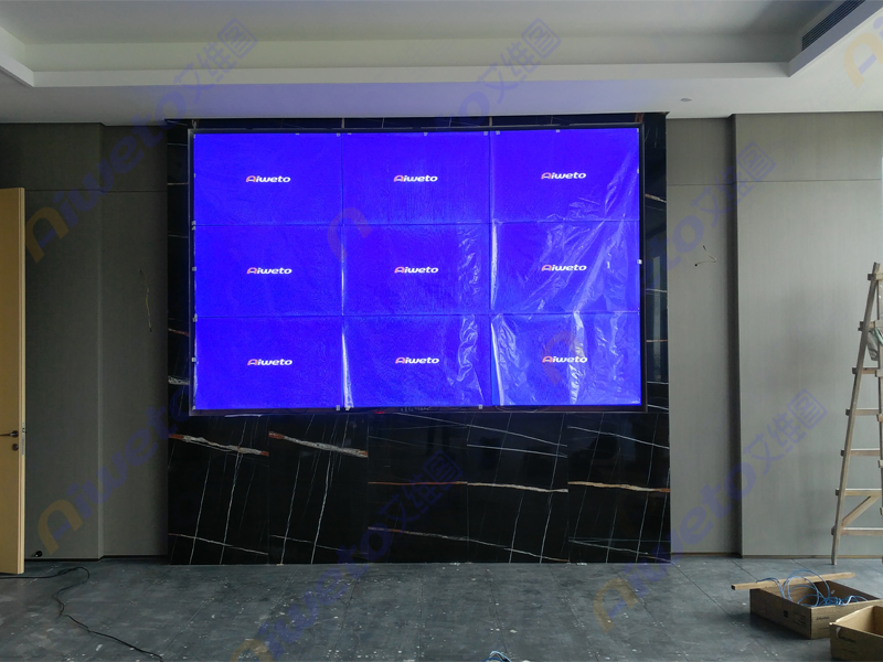 艾維圖科技對整個大屏幕進行了功能規劃,設計了3×3拼接,采用目前較流行的液壓式前維護支架。該顯示系統使用了艾維圖55寸超窄邊液晶拼接單元,外置視頻圖像處理器以及一套高性能中央控制系統系統。本次建設選用的液晶顯示單元單屏分辨率為1920×1080,畫面清晰、色彩真實、大畫面大尺寸視覺沖擊感強力!結合會議室現場環境簡直天衣無縫。