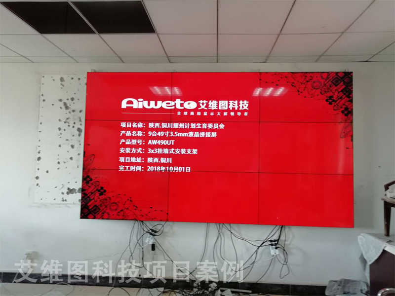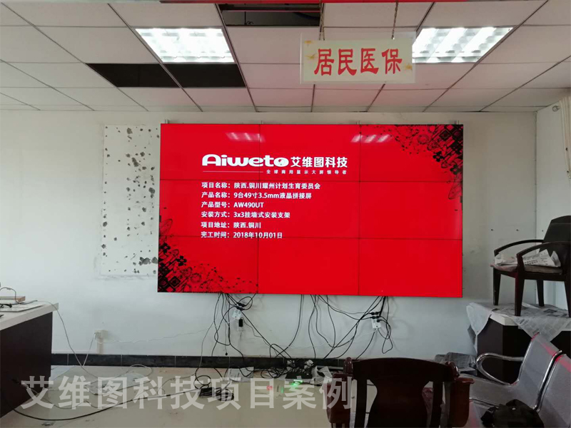 陜西銅川耀州計劃生育委員會安裝的艾維圖55寸3.5mm超窄邊液晶拼接屏案例,我們的工程師根據(jù)現(xiàn)場的環(huán)境布局,設(shè)計了一套3*3液晶拼接屏方案,擁有超高亮度和色彩一致性效果較好,本身就可被看作是充滿時尚科技元素的建筑裝飾,成為銅川耀州計劃生育委員會提升檔次的宣傳工具。這次拍的液晶拼接墻圖片非常的給力,讓群眾通過液晶拼接大屏能快速的了解計劃生育信息,及具體規(guī)劃。