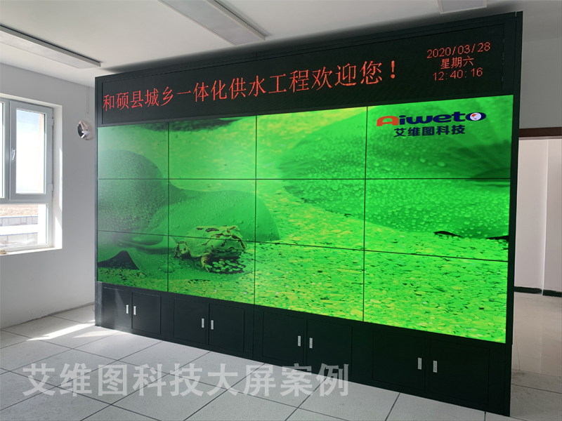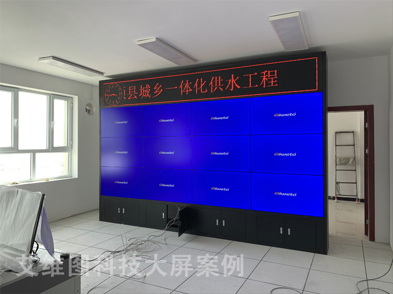 近年來,國家出臺多項政策文件,針對農村供水存在的突出矛盾,提出了農村飲水安全鞏固提升、城鄉一體化供水的工作任務,確定了提高農村自來水普及率和水質達標率,使城鄉居民共享安全、優質供水的工作目標。這次艾維圖生產的49寸液晶拼接屏、P3.75LED顯示屏、多功能解碼矩陣一體機產品的應用,充分的說明了城鄉一體化供水工程正在逐步走向集體化、數據化、系統化,通過液晶拼接墻展示出現代化供水項目的發展,讓人不禁感到驚訝。下面讓我們來看一下艾維圖12臺49寸液晶拼接屏的效果圖吧。