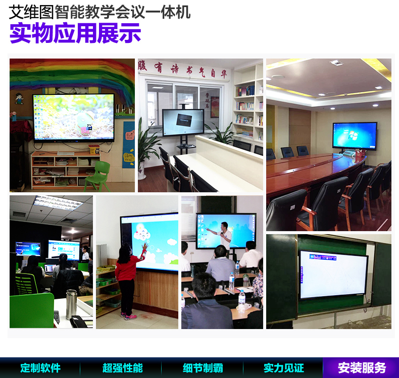 AW系列-多媒體教學(xué)一體機,高清大屏顯示,壁掛支架多種使用方式,人性化機型設(shè)計,立式與掛式兩種使用方法可交替使用,避免使用環(huán)境發(fā)生變化時產(chǎn)生的資源浪費問題采用LED背光源長壽命,低功耗,環(huán)保節(jié)能。智能電子白板,各種文件一鍵加載,多點觸控智能電子白板適用于各種商務(wù)會議,支持手寫批注,兼容日常office辦公軟件,本地、U盤、網(wǎng)盤、局域網(wǎng)數(shù)據(jù)輕松駕馭。書寫流暢,減少視覺誤差,高端企業(yè)必備,多重主題背景,筆形色彩,任意選擇。高端配置 讓運行速度,完美兼容WIN7,WIN8 隨意切換。