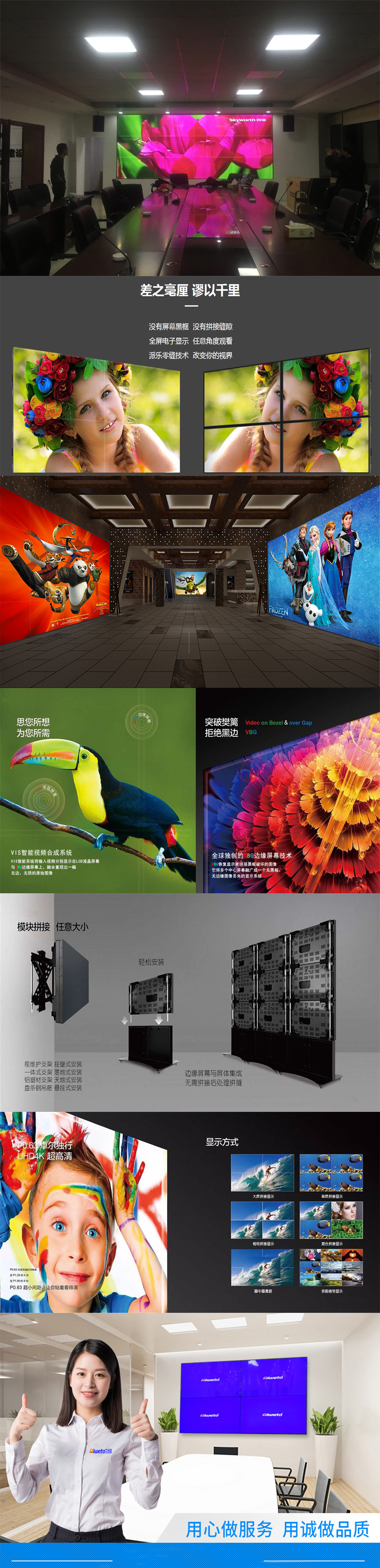 ★液晶無縫顯示拼接—顯示區(qū)域內(nèi)沒有拼接屏的“正面邊緣黑色”,結(jié)合無間隙全新LCD拼接顯示技術(shù),實(shí)現(xiàn)了液晶無縫拼接顯示,液晶拼接大屏幕顯示區(qū)域完全消除了拼接屏的(黑色)邊框,在顯示區(qū)域不再有“正面邊框”顯示的黑帶。