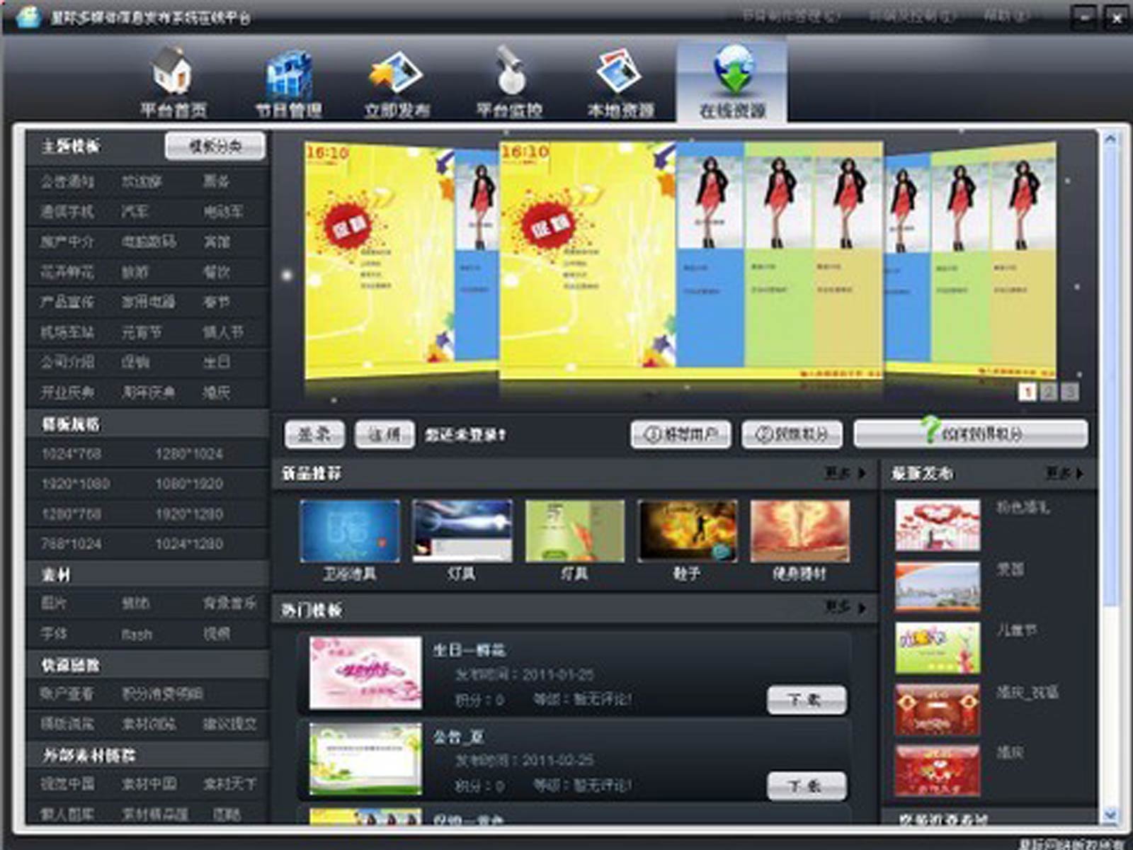發布簡單 僅需四步 第一步:選擇模版;第二步:節目制作;第三步:節目排期;第四步:節目發布 |
